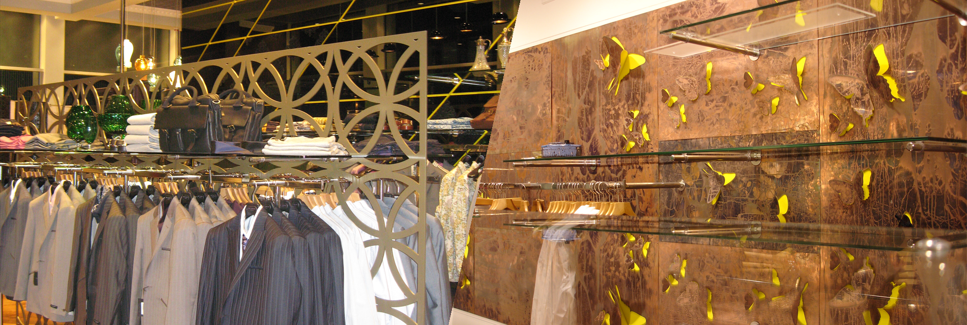 Our client approached Freshlook on behalf of Ted Baker. We received metalwork designs to fabricate and install into their Bristol and London stores in England. Using a combination of lasercutting, profiling and graining, we produced the final selection of varied sized steel decorations on the walls, floors, ceilings and windows.